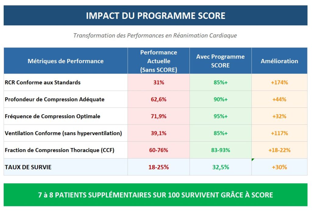 SCORE est votre programme de formation et d’assurance qualité conçu pour améliorer les performances des équipes de réanimation cardiaque dans les hôpitaux.